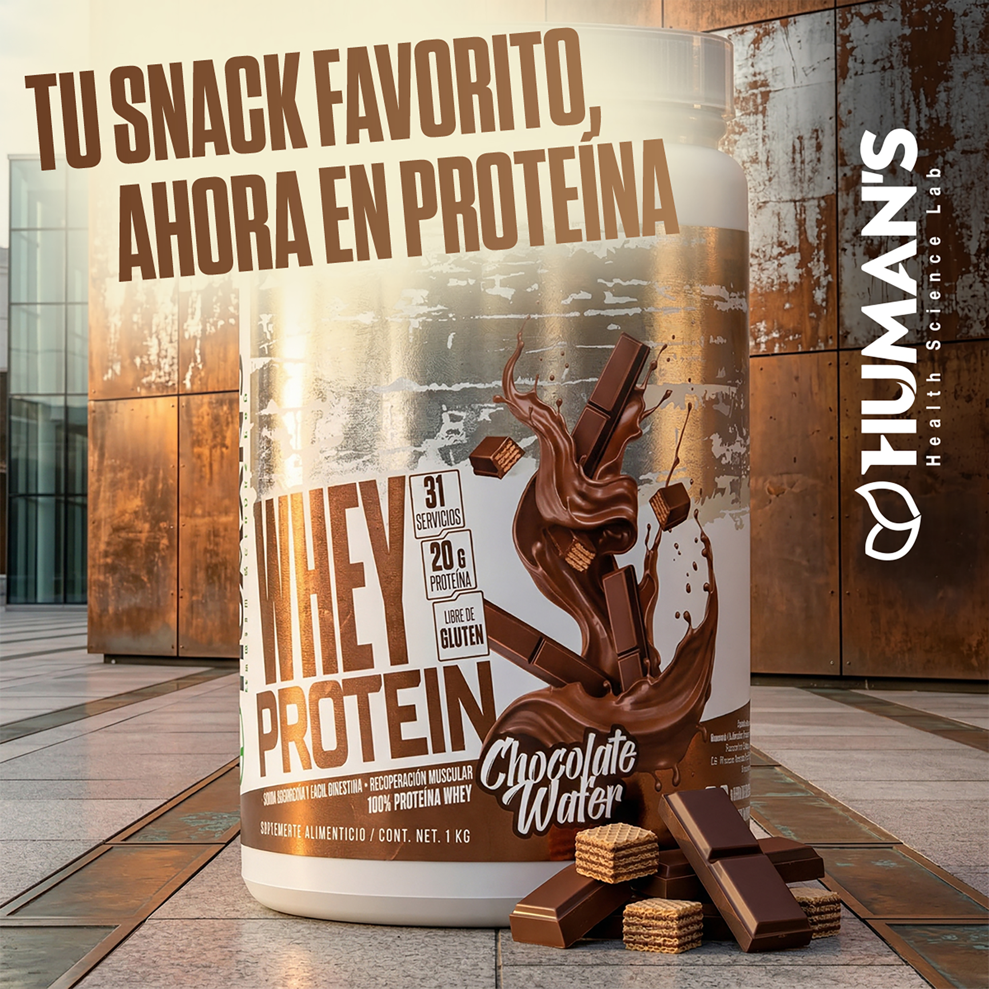 Humans Whey Protein β Chocolate Wafer | 20g Protein | No Added Sugar | Gluten Free | 31 Servings